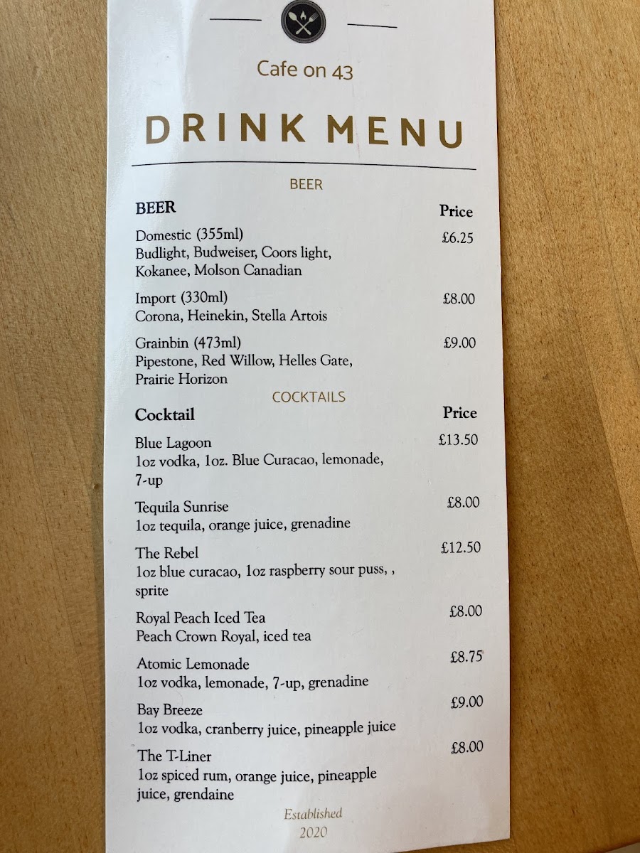 Cafe on 43 Menu